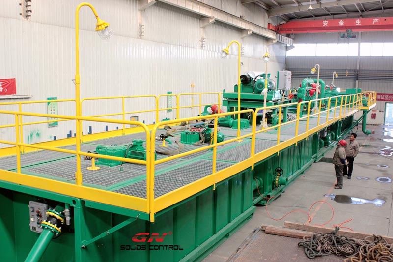 5.本套750HP鉆機泥漿固控系統一共包含4具泥漿罐,所有固控設備都被緊湊合理的布局在泥漿罐預設的位置上,人員操作起來更方便更安全。